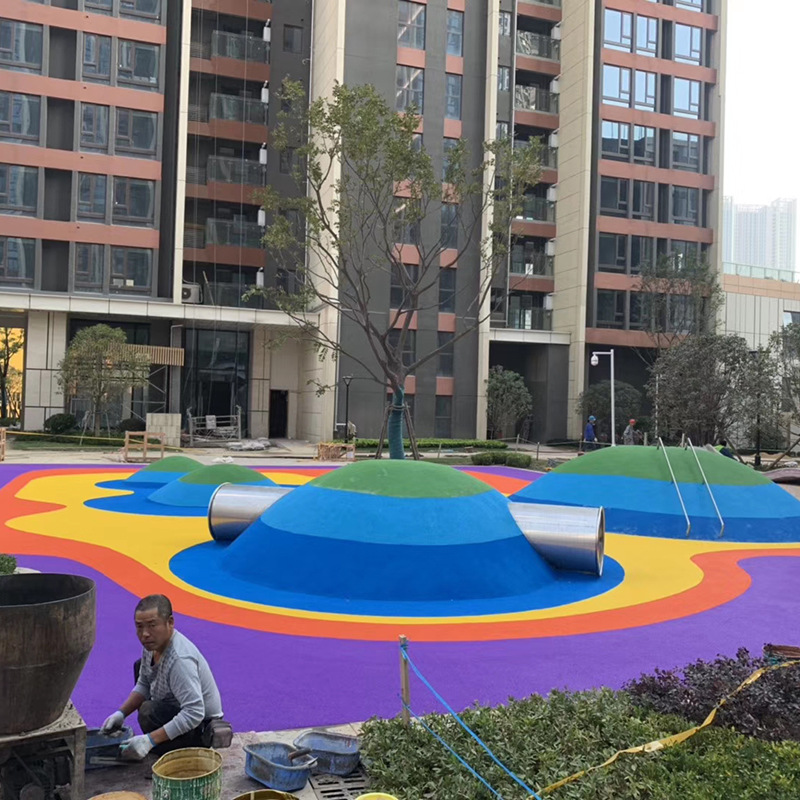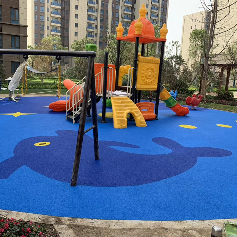 7、幼儿园EPDM塑胶对基础地面要求必须做到很平整,面层必须是光面,这样才能使塑胶跟地面粘接牢固,不脱层。